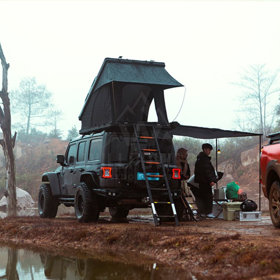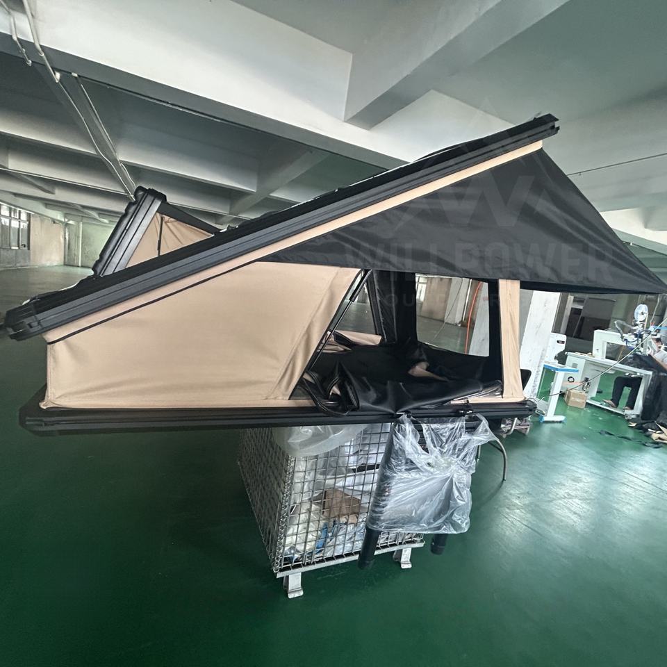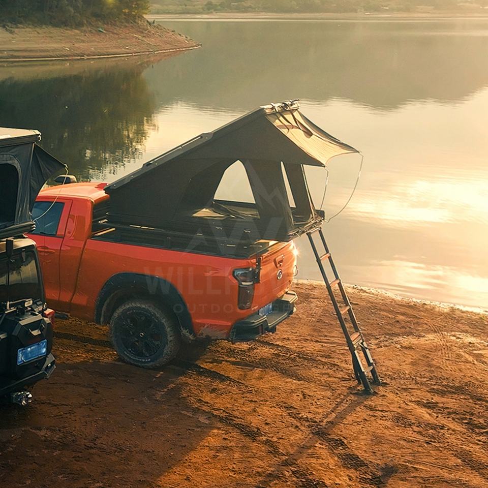 Willpower Logo personnalisé Coque rigide en alliage d'aluminium et échelle en tissu Oxford pour tente de toit de voiture 4x4 tout-terrain coupe-vent