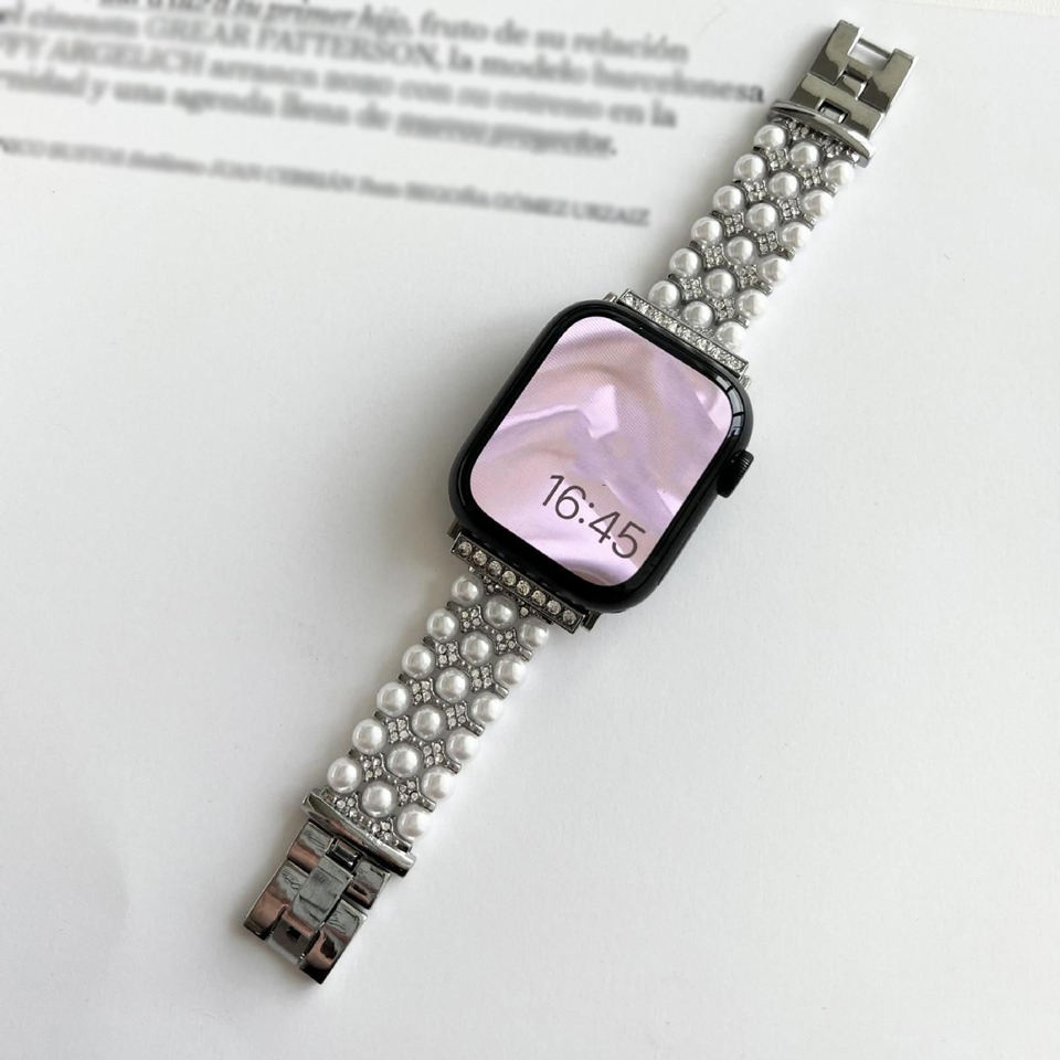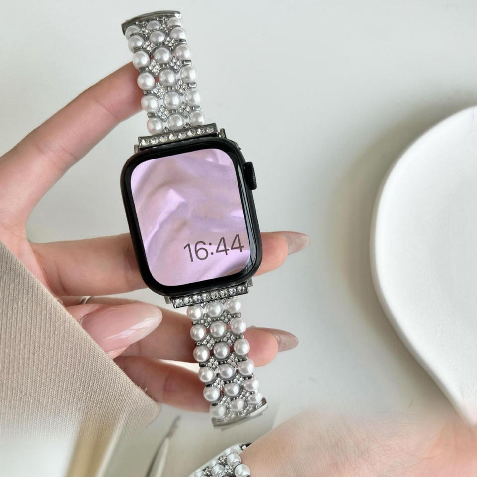 Bracelet de montre en diamant avec chaîne de perles gagnant-gagnant pour Apple Watch Series 10 9 42mm 46mm 41mm 45mm Bracelet de bijoux pour femmes