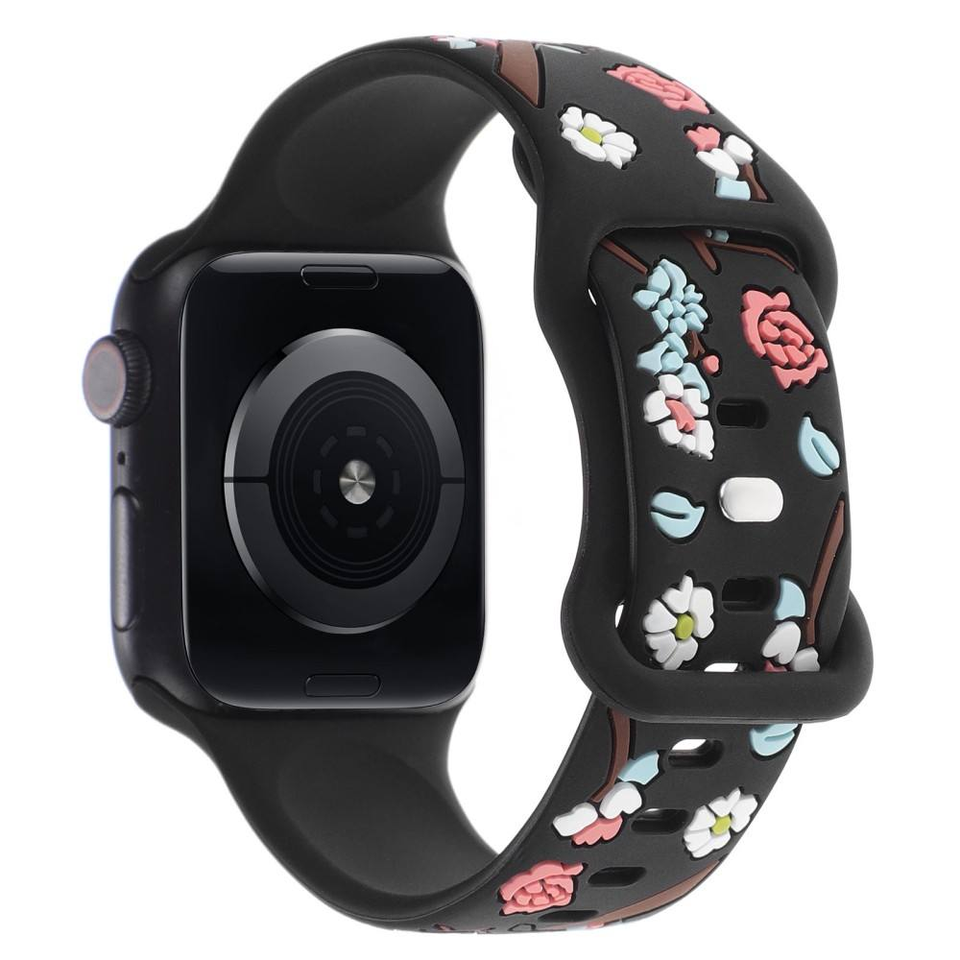 Bracelets de montre en caoutchouc imprimés de fleurs remarquables, résistants à la transpiration, compatibles avec Apple Watch Series 5 40mm 44mm pour femmes