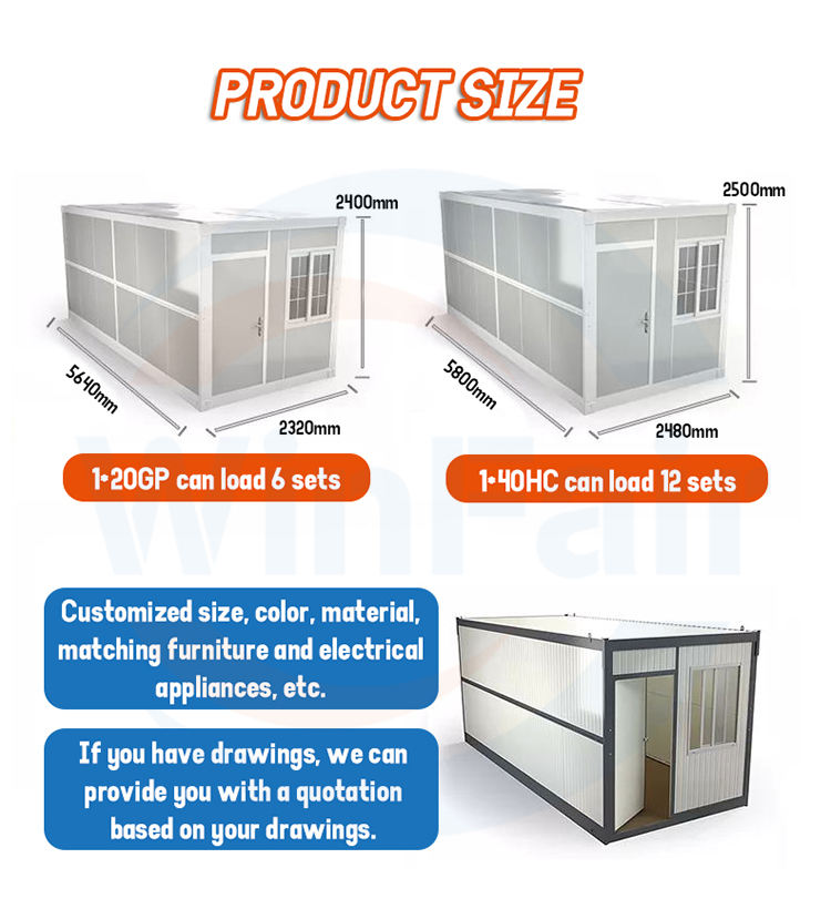 WinFair 20Ft Maison Portable Pas Cher Facile À Assembler Maurice Préfabriqué Café Conteneur Pliable Maisons Maison Préfabriquée Avec Wc