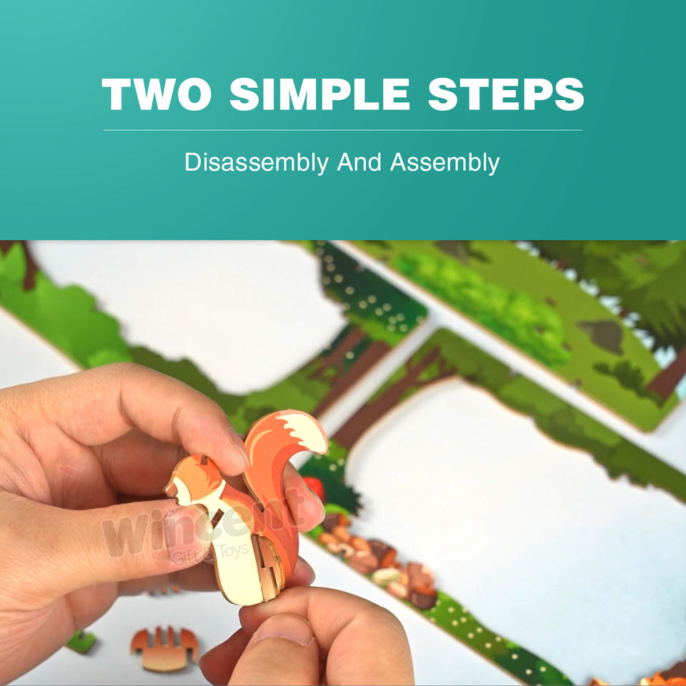 Wincent Design Original 3D Puzzle en bois Style bois Animal Mini papier théâtre assemblage facile jouet éducatif cadeau pour les enfants