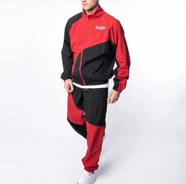 Ensemble coupe-vent pour homme en polyester et nylon, veste zippée et short, deux pièces