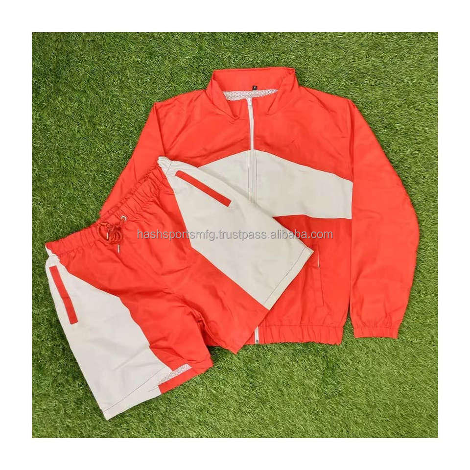 Ensemble coupe-vent pour homme en polyester et nylon, veste zippée et short, deux pièces