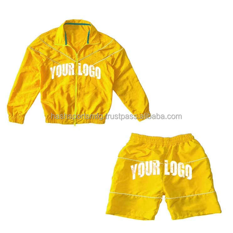 Ensemble coupe-vent pour homme en polyester et nylon, veste zippée et short, deux pièces