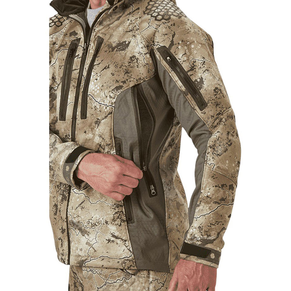 Ensemble de vêtements de chasse coupe-vent en softshell, imperméable, respirant, 100% polyester, imprimé camouflage animal, unisexe