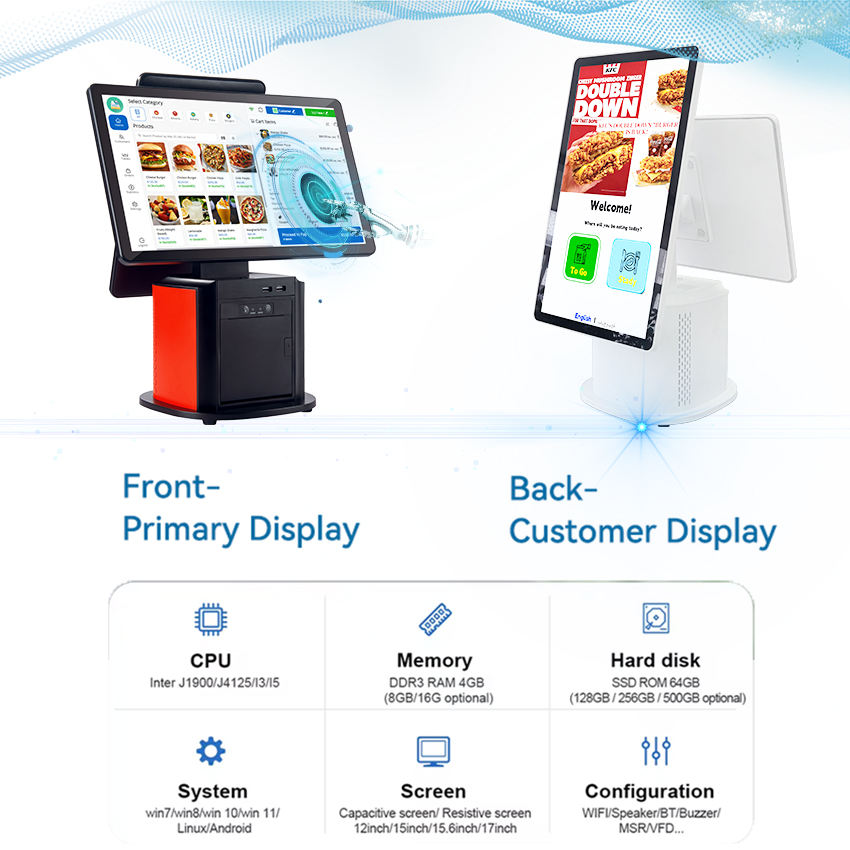 Fenêtre système Android écran tactile POS caisse enregistreuse 10 points capacitif tactile 15 pouces moniteur pour hôtel supermarché point de vente