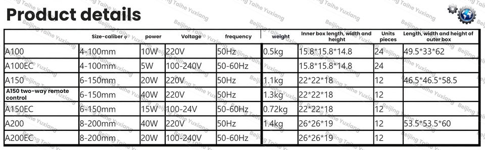 Numéro de Type:A100, A100EC, A150, A150-Bidirectional remote control, A150EC, A200, A200EC