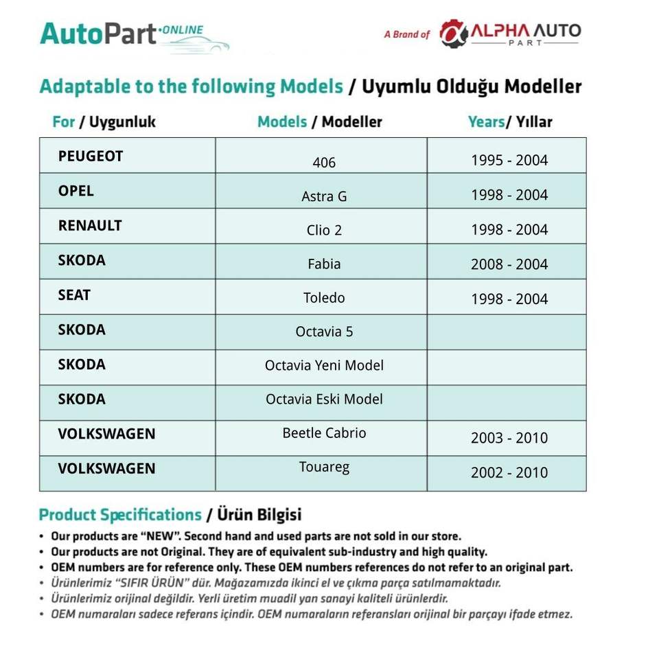 Marque nom:Volkswagen Compatible Spare Parts