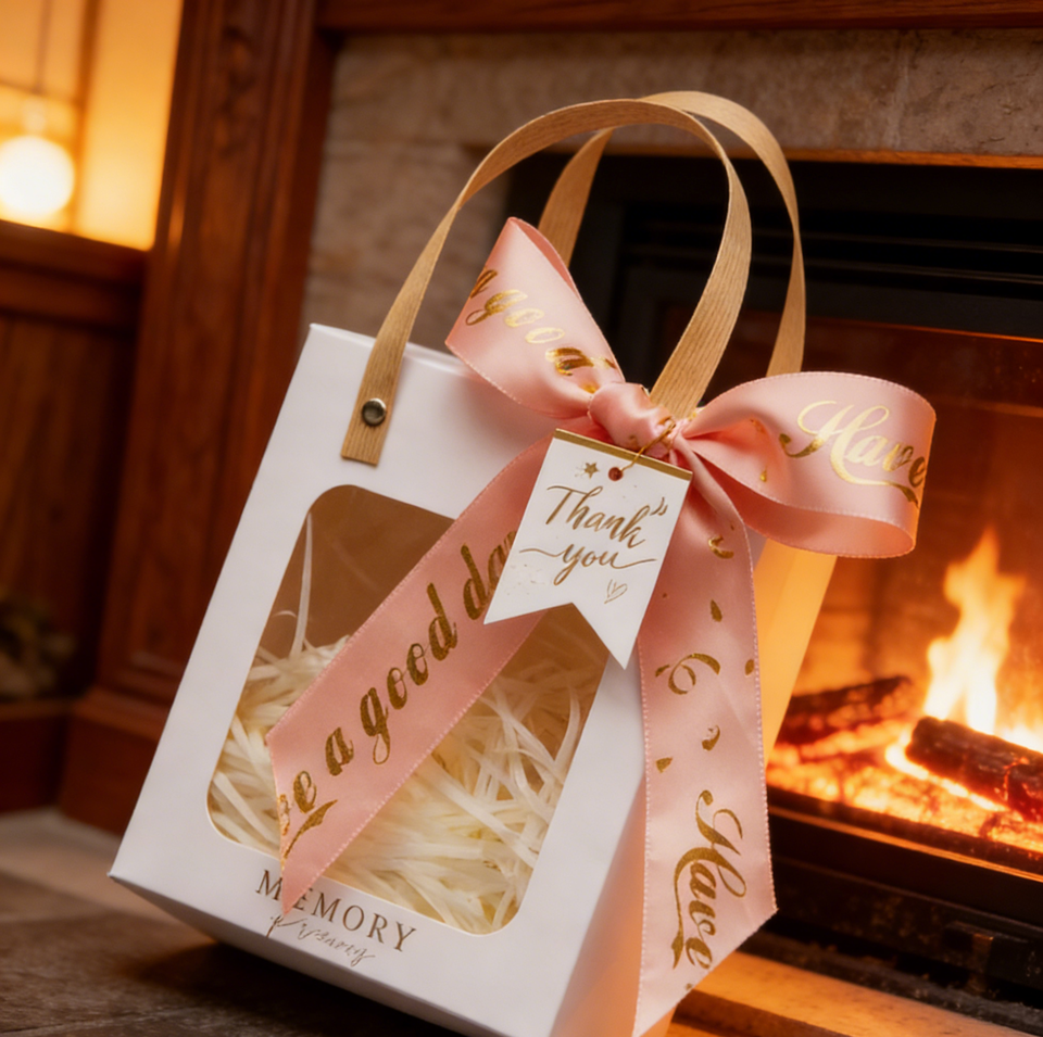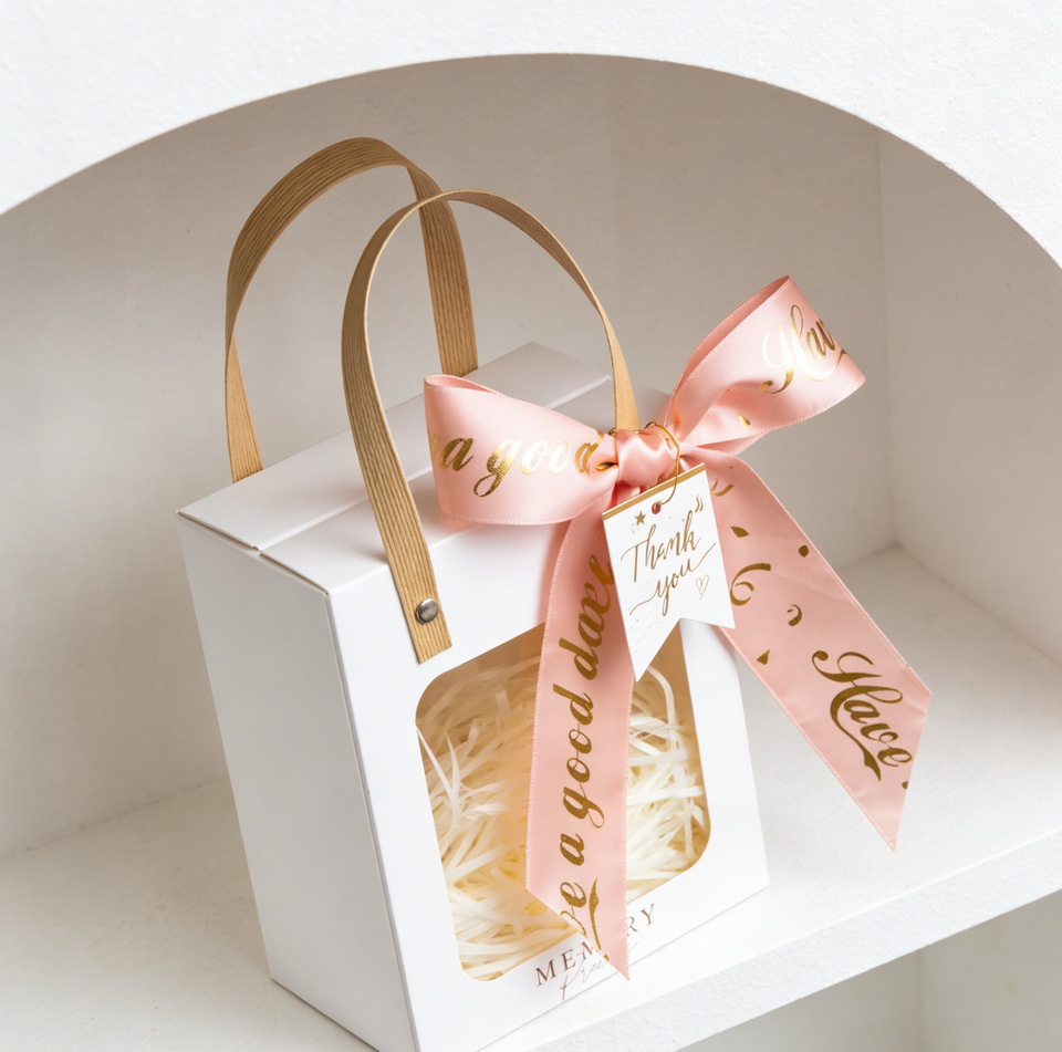 Handmade Eco-Friendly Windowed Handle Gift Box Made of Thick White Cardboard with Gold Foil Stamping and Transparent PVC Window