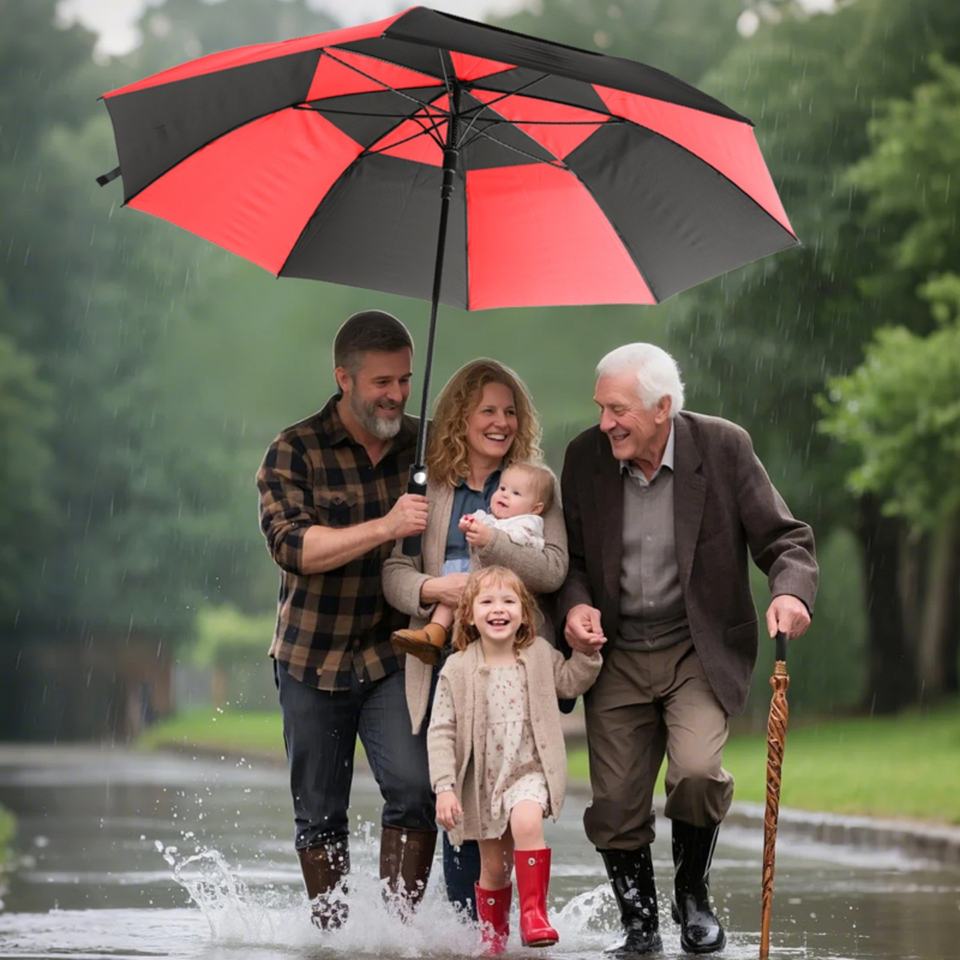 Parapluie de golf pour homme, double toit coupe-vent, manche long, protection UV, grand format, anti-pluie et anti-soleil