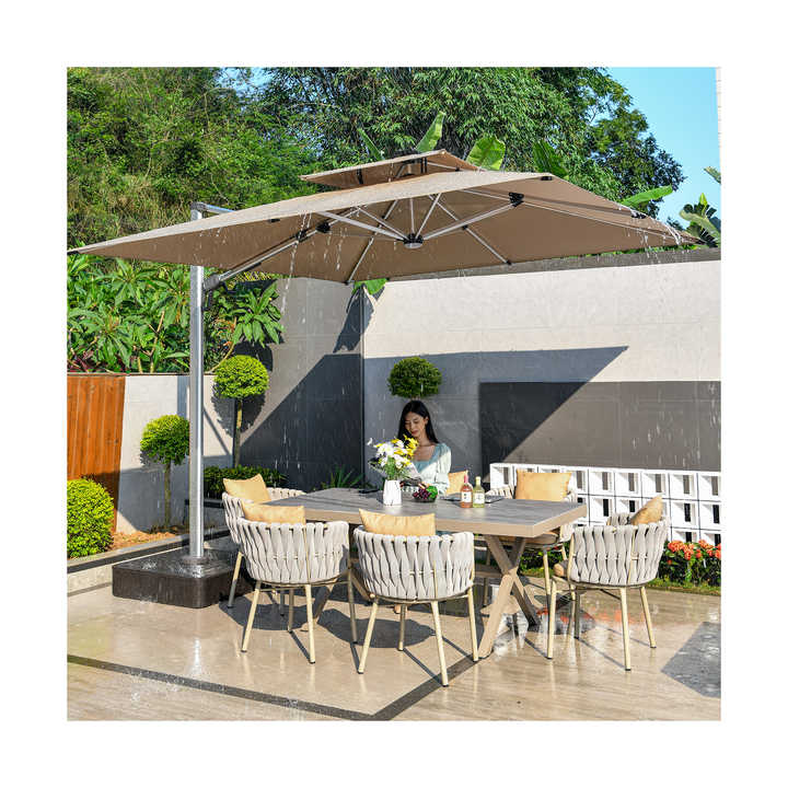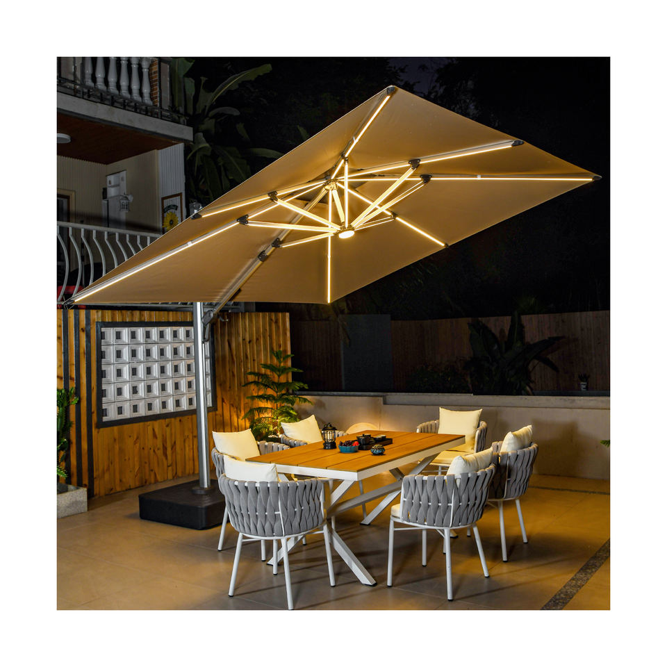 Parasol de jardin d'extérieur, résistant au vent, stable, 11x7cm, jaune, blanc, solaire, parasol, pare-soleil
