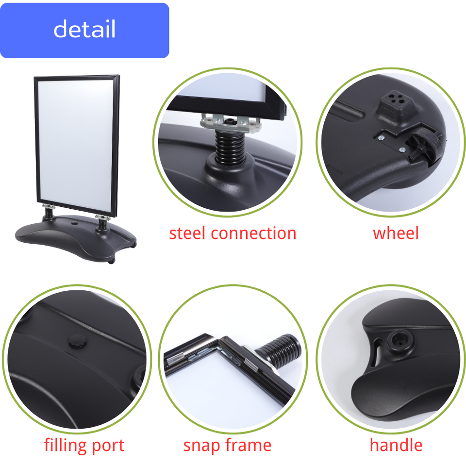 Support de signalisation extérieur résistant au vent et rempli d'eau pour affiches publicitaires d'entrée de centre commercial et de trottoir