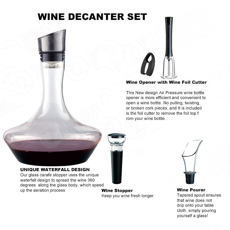 Ensemble de carafe à vin en cristal de qualité supérieure, carafe à vin rouge en cristal avec ouvre-bouteille à vide. Verseur à vin, bouchon