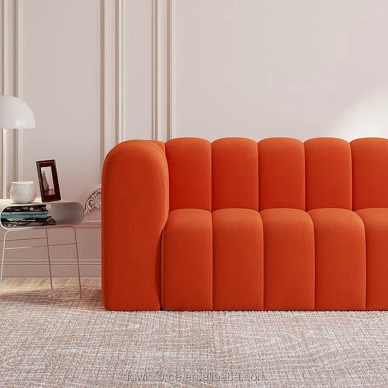 Winforce nouveauté canapé tufté 3 places design moderne luxe rembourré Orange velours salon canapés pour bureau à domicile