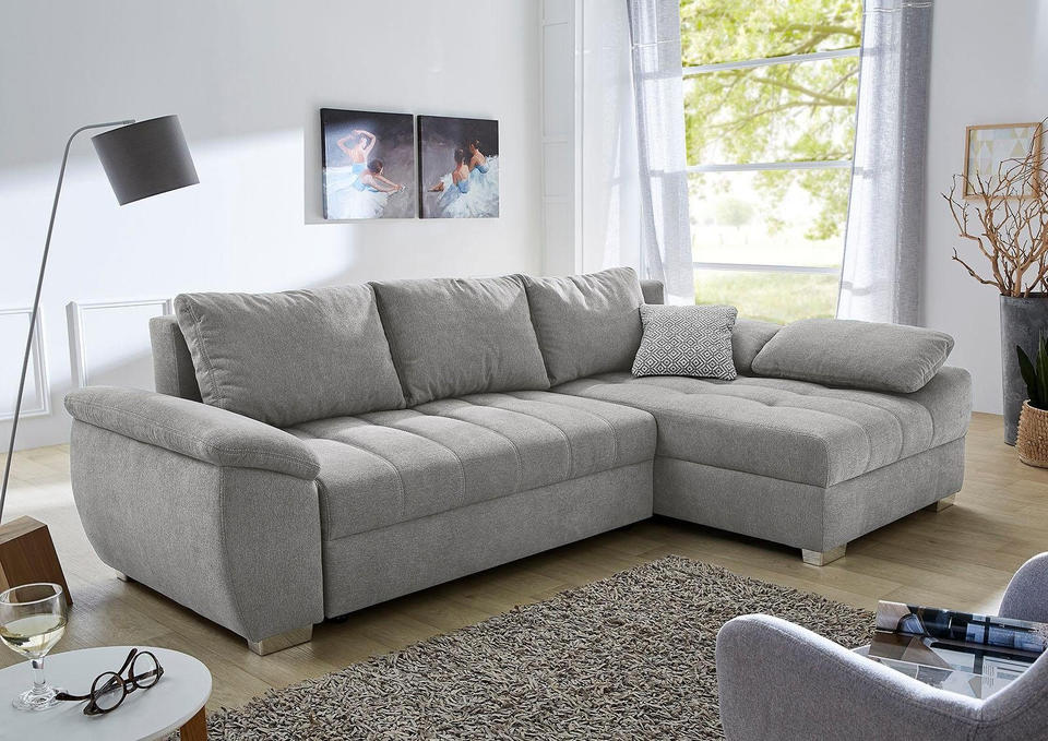 Canapé d'angle en lin avec fonction de lit et pouf de boîte de lit peut être monté