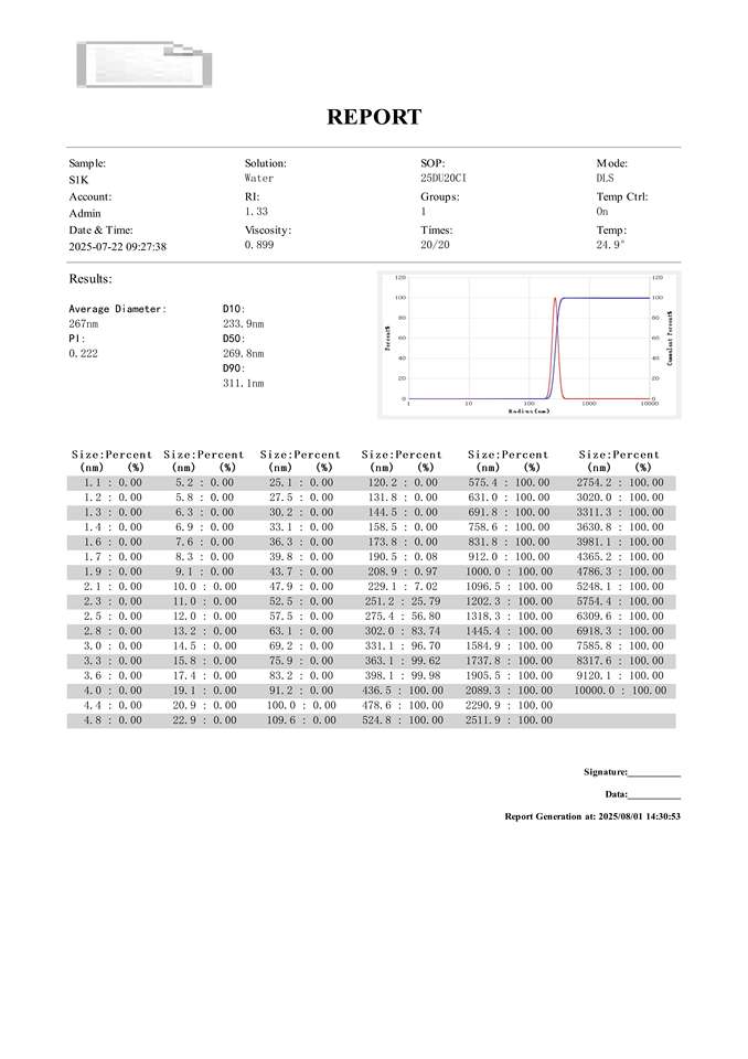 Erreur de précision:<1% (valeur standard nationale de l'échantillon D50); <10% (échantillon standard)
