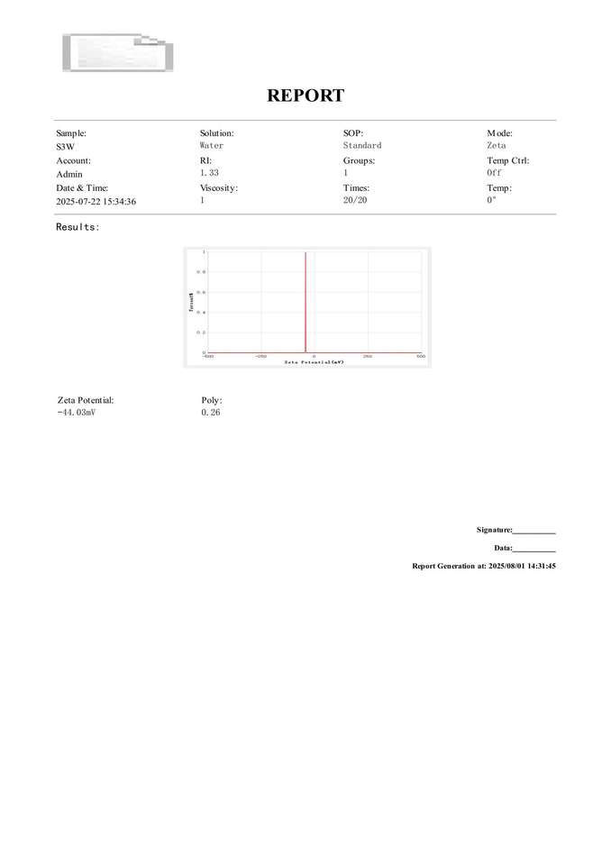 Plage de mesure du potentiel Zeta:-500mV - + 500mV