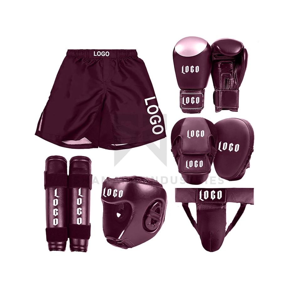 Ensemble de combat de boxe gagnant rouge avec logo personnalisé nouveau design 6pcs gants et shorts en cuir PU de haute qualité poignées extensibles