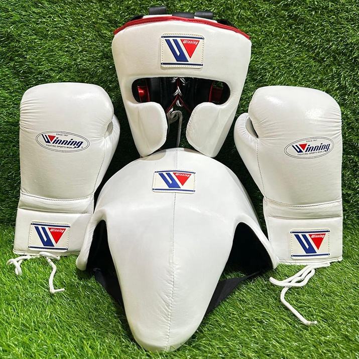 Ensemble de boxe Winning Brown avec gants de boxe, protège-tête et protège-aine, protection de sécurité, cuir véritable confortable, MMA