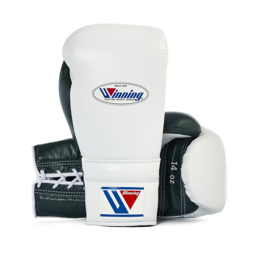 Gants d'entraînement Winning Customized Brand New 14oz Boxing MS-White Dark Green Lace