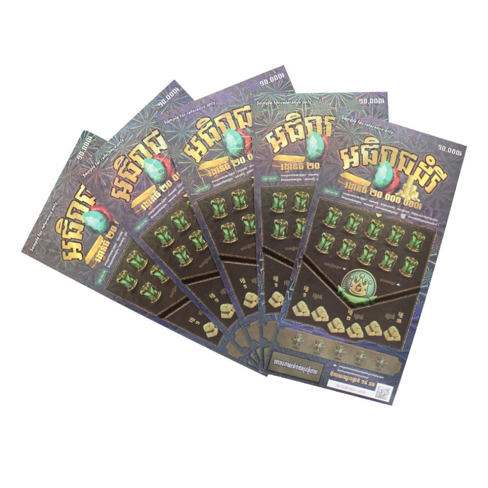 Billets de loterie à gratter personnalisables avec impression numérique, zone à gratter, thème, taille, couleur du papier et design