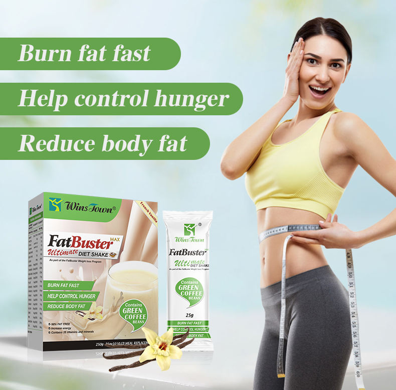 Poudre Minceur Winstown Fat Buster Blaster, Shake Nutritionnel, Substitut de Repas Satiété, Arôme Vanille, OEM, Milkshake Café