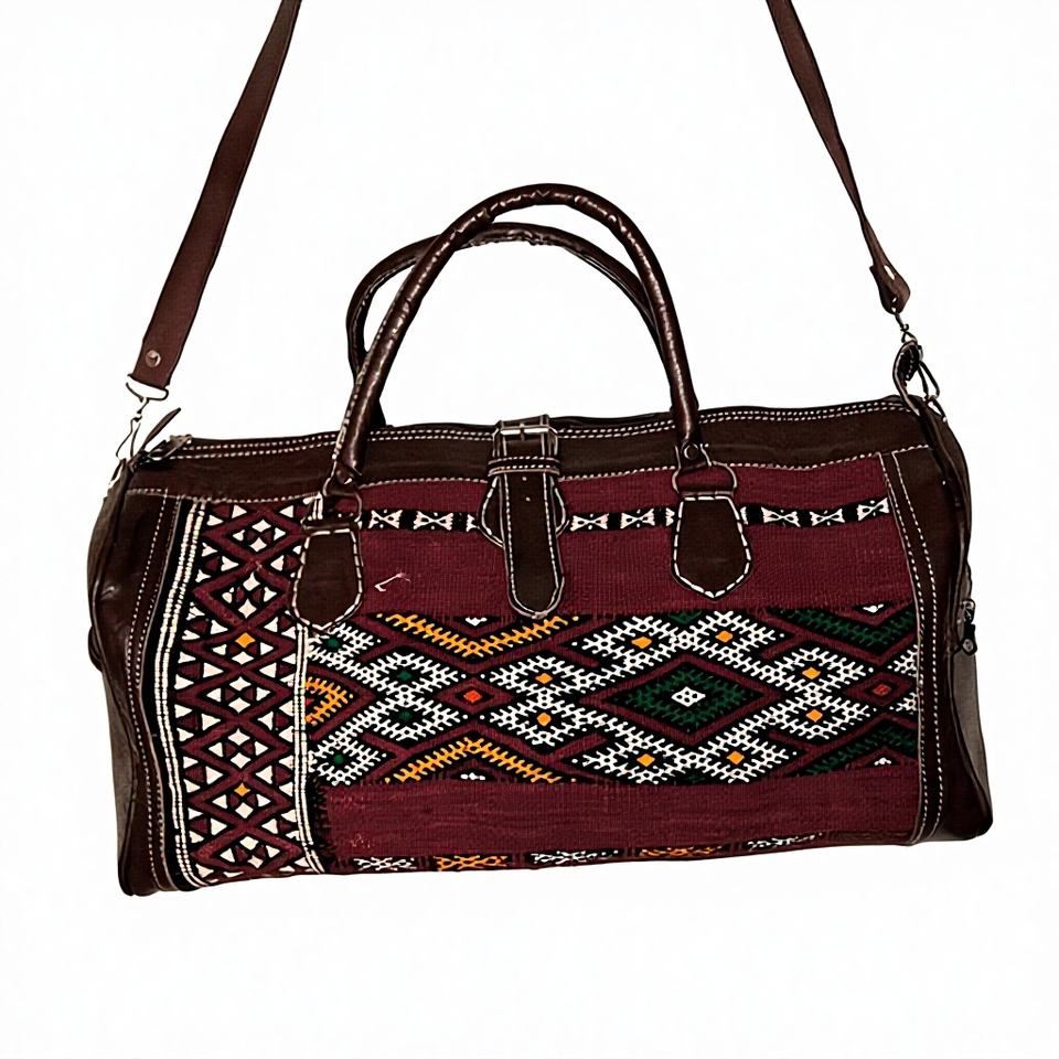 Sac de voyage week-end en cuir véritable bohème d'hiver Kilim Tissu Kilim authentique avec un design élégant pour une utilisation nomade