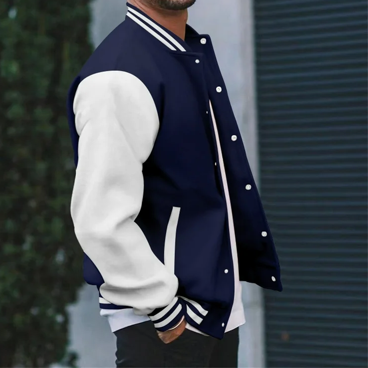 Blouson Bomber d'Hiver Homme Style Baseball Oversize Hip Hop sans Col avec Fermeture Éclair