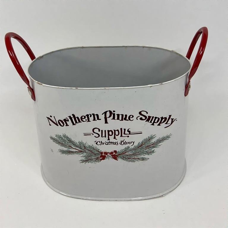 Planteur de chemin de bougie d'hiver en texture galvanisée pour les arrangements floraux de jardin de Noël Poinsettia et pommes de pin