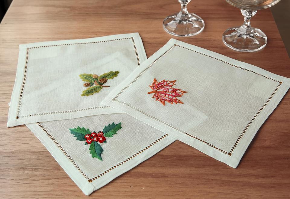 Serviette de cocktail en lin Winter Charm | Linge de table en lin 100% naturel de qualité supérieure, écologique et réutilisable, design élégant d'hiver