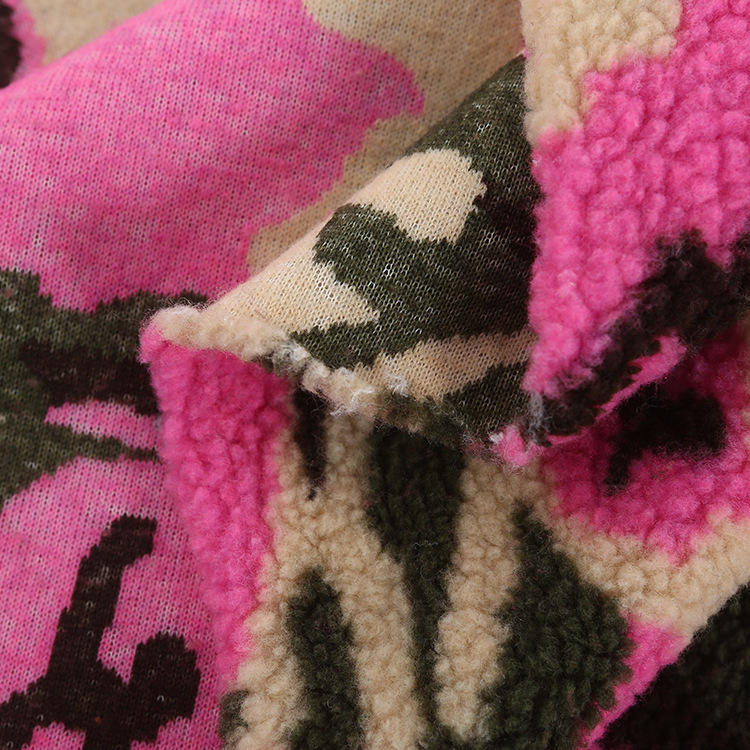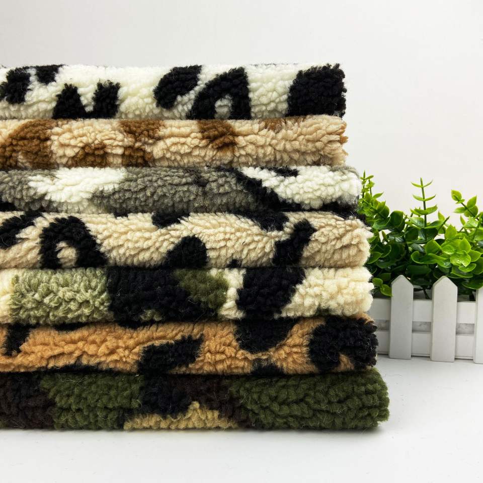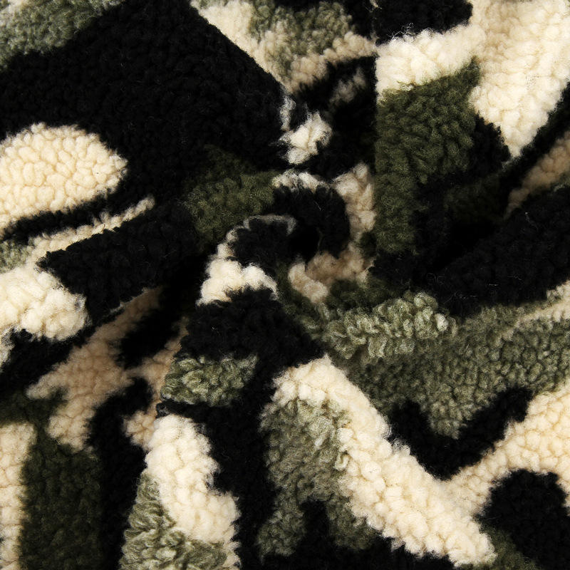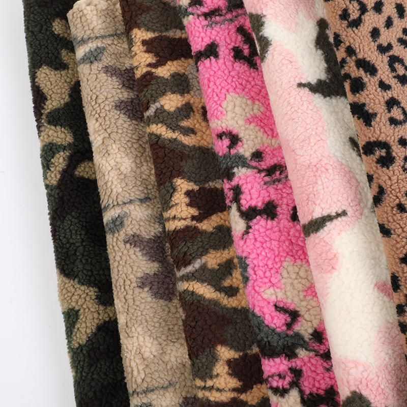 Vêtements d'hiver, tissu polaire sherpa double face 100% polyester imprimé camouflage fausse fourrure pour vêtements/