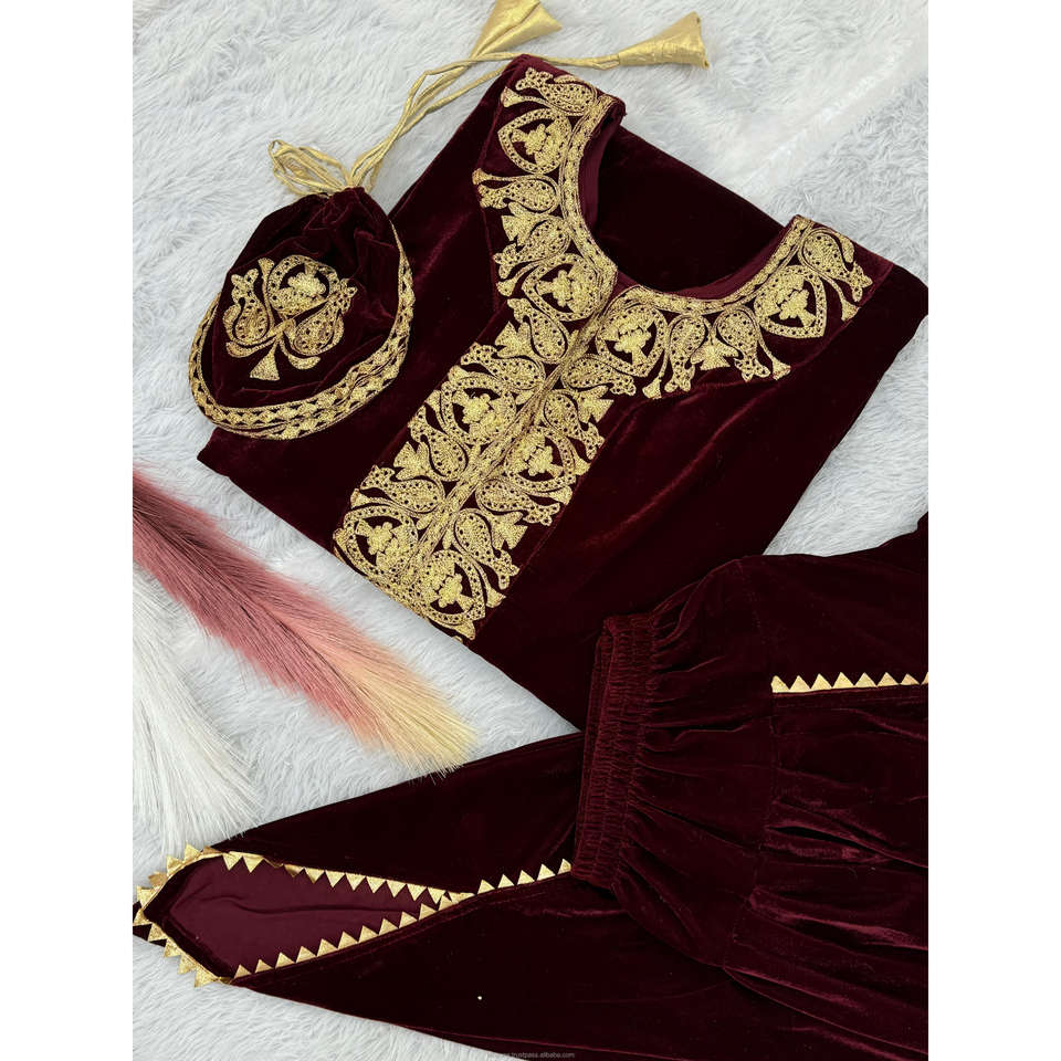 Collection Hiver Superbe Broderie Travail Pur Velours Visqueux Kaftan Avec Dhoti Set