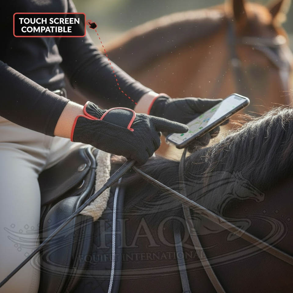 Paume à haute adhérence, Usage équestre, Utilisation toutes saisons, Compatible été et hiver, Cuir et synthétique disponibles, Coupe ergonomique, Poignée de contrôle Rein, Personnalisable par l'OEM, Ressort, Antidérapant, Thermique/Isolé, Dragonne réglable, Compatible Avec l'écran tactile, Léger, Respirant, Séchage rapide, évacuation de l'humidité, Doigts pleinsCaractéristiques