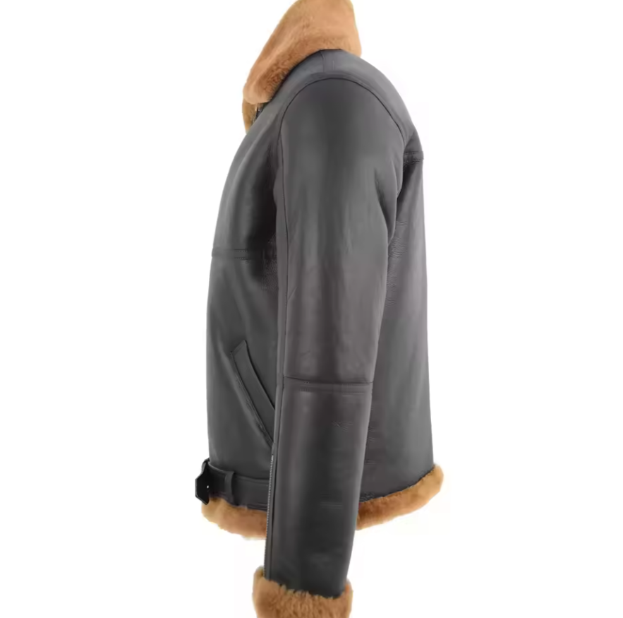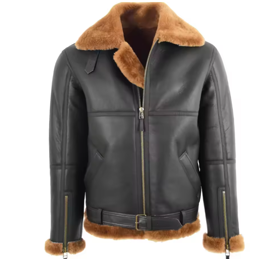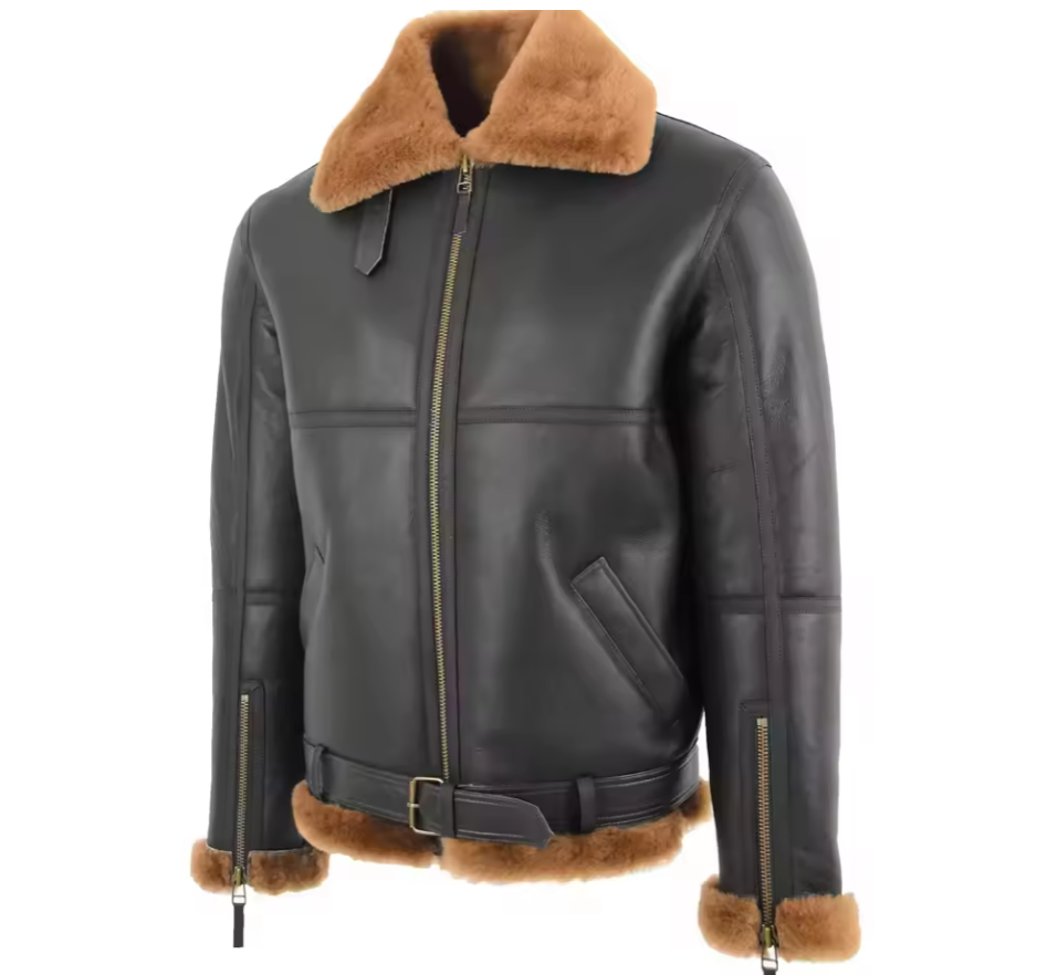 Hiver Esprit Hommes Style Aviateur Veste en cuir de fourrure Qualité supérieure en cuir véritable Fermeture à glissière Top Personnalisable Vente en gros