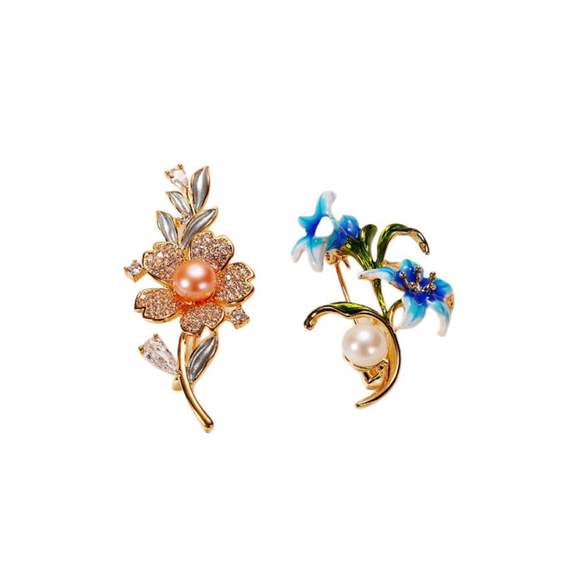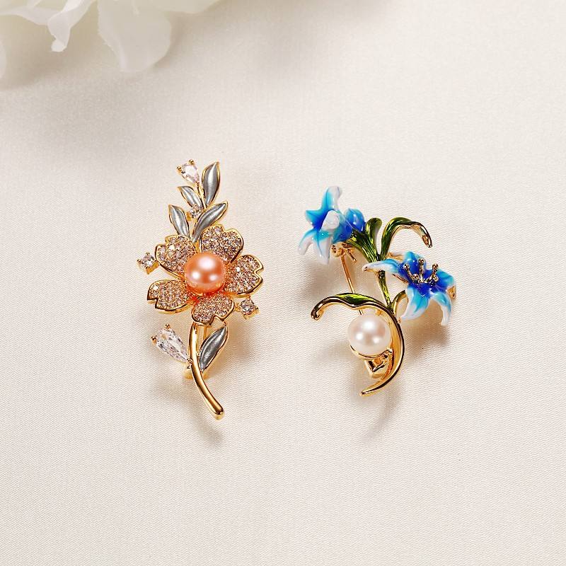 Winter Fashion Brooch Temperament Coat Suit 8mm Flat Chest Flower Atmospheric Zircon Freshwater Pearl Elegant Cheongsam