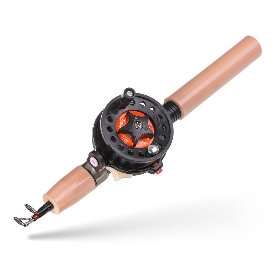 Mini canne à pêche sous vide avec moulinet en métal, accessoire élastique en carbone avec poignée antidérapant de couleur bois, adapté à la pratique d'hiver, nouveauté,