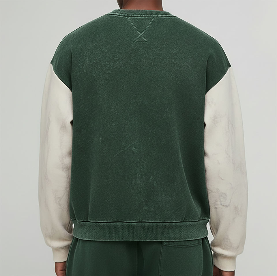 Sweat-shirts pour hommes en polaire d'hiver à épaules tombantes, color block, avec logo brodé personnalisé, appliqué, effet délavé, style streetwear