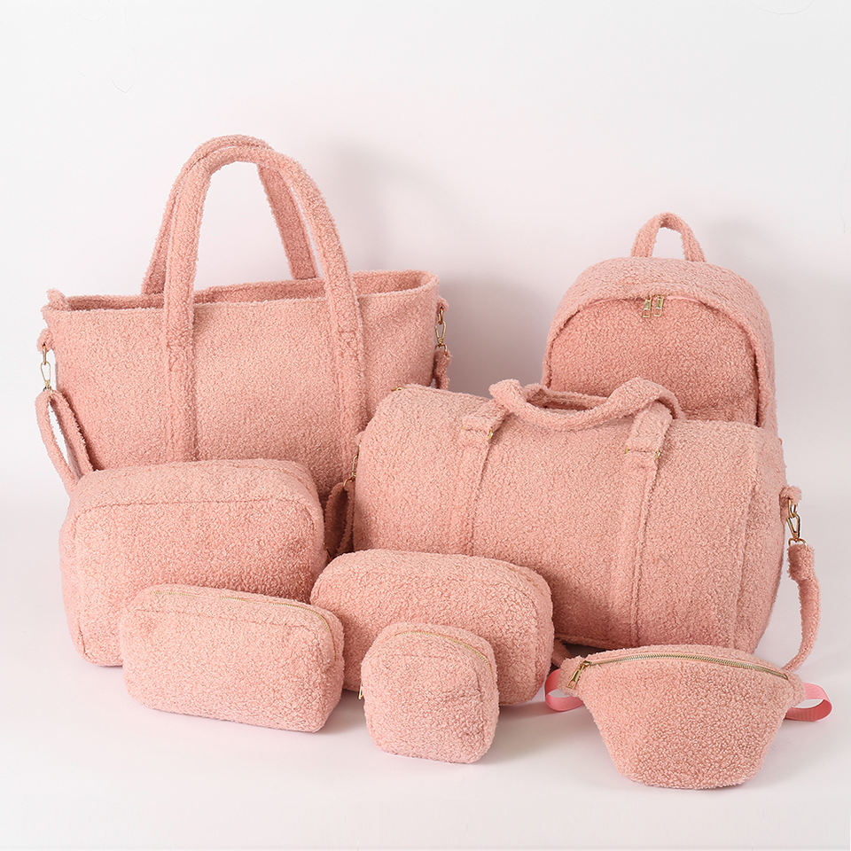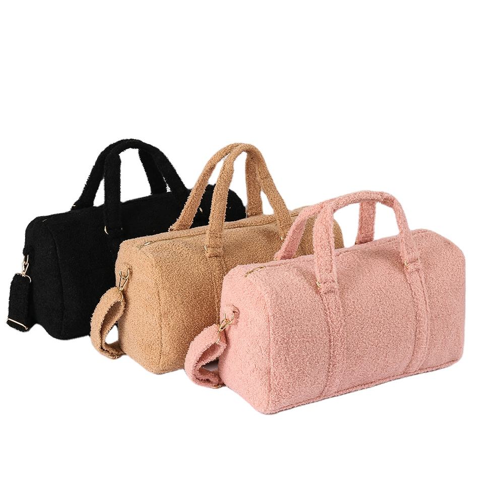 Sac de voyage fourre-tout pour filles, musette rose de week-end, super mignon, en peluche, pour enfants, nouvelle collection hiver