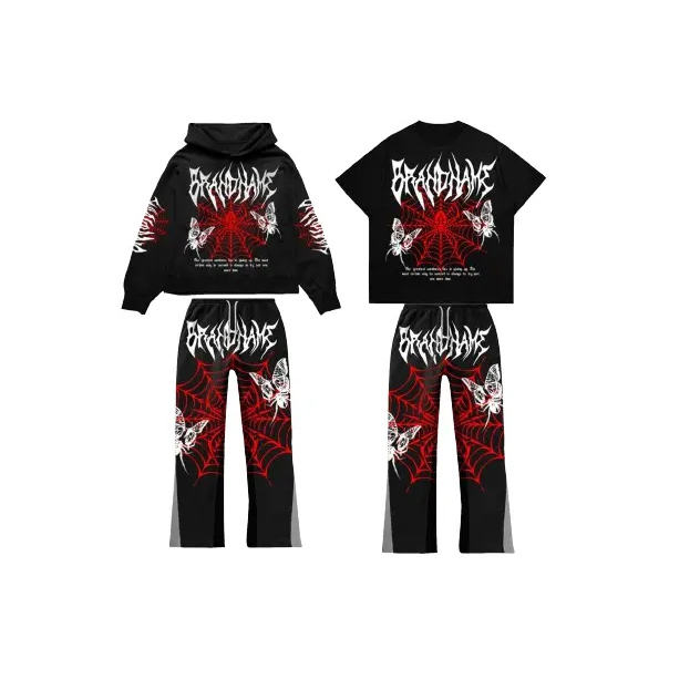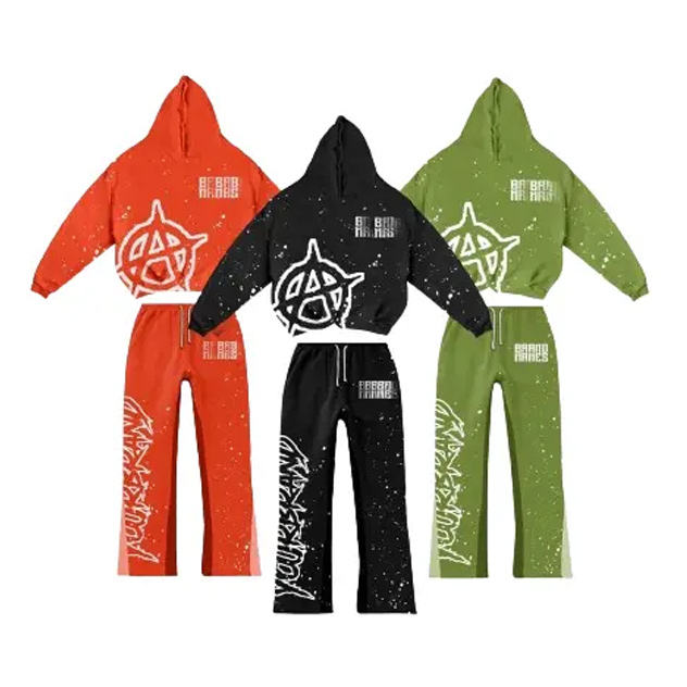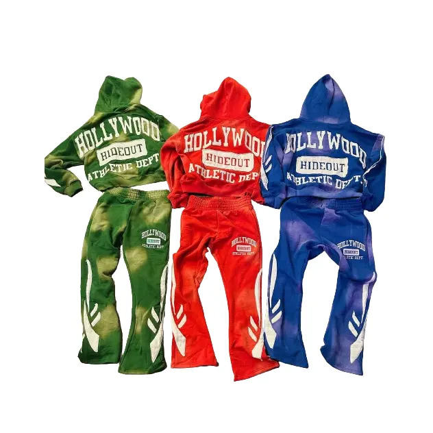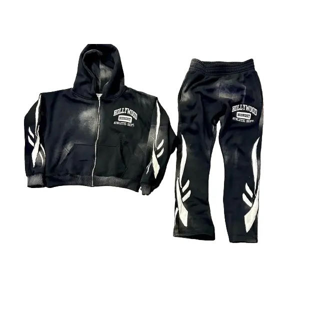 Ensemble de survêtement pantalon à pattes évasées à coupe régulière imprimé avec des strass personnalisés en tissu épais pour l'hiver