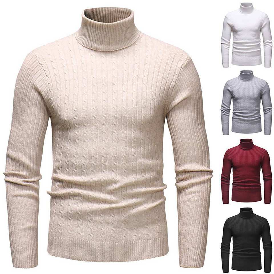 Hiver col haut pull chaud/slim fit pull hommes tricots mâle double col col haut