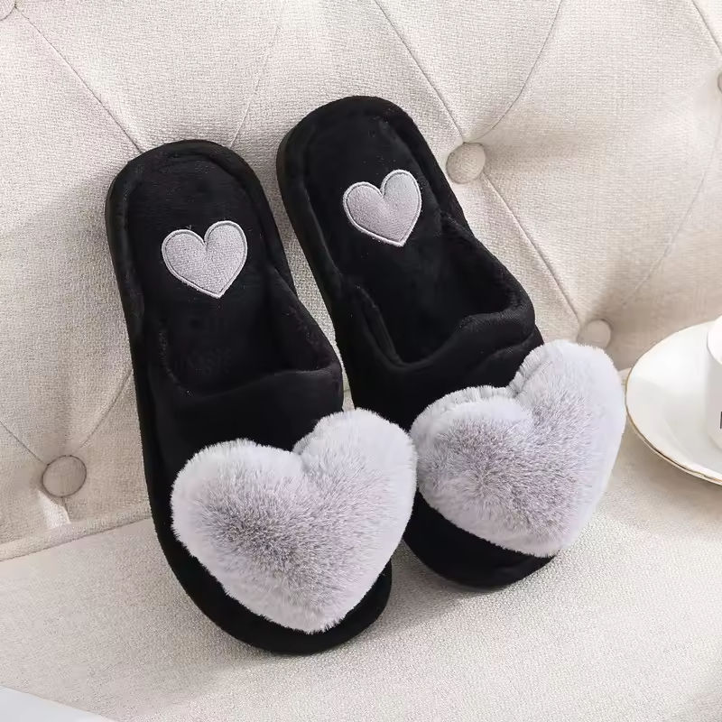 Pantoufles d'hiver chaudes pour la maison, pantoufles d'intérieur avec logo personnalisé, design en fourrure en forme de cœur pour femmes et filles