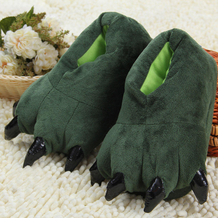 Maison d'hiver pour pantoufles Pyjama animal mignon avec point de tigre et patte de dinosaure Peluche chaude pour pantoufles