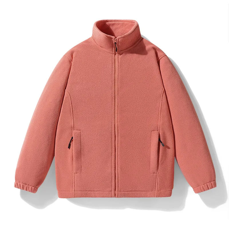Veste d'hiver pour hommes en polaire Sherpa de couleur unie avec col montant logo avant style zippé personnalisé en usine avec poches chaudes