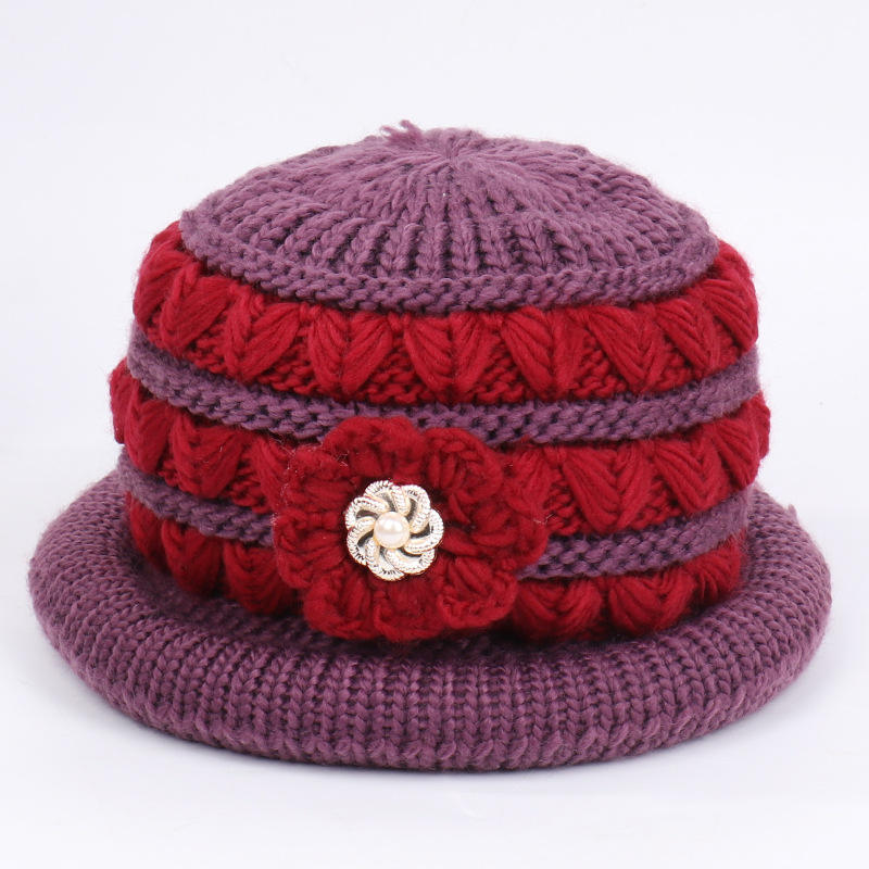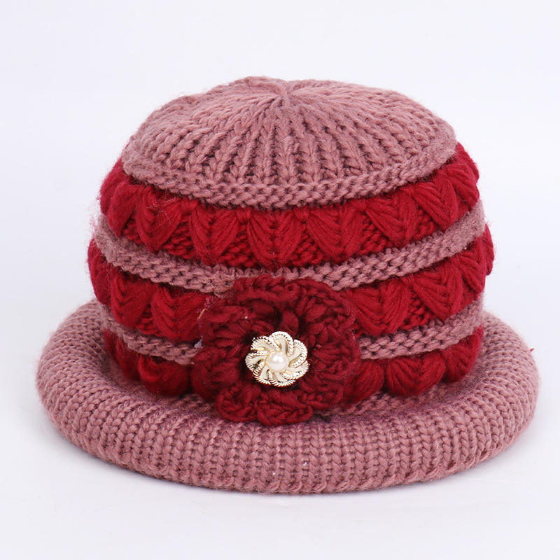Chapeau bob en tricot d'hiver avec bordure rouge rose, chaud et épais pour femmes, protection du cou, pare-soleil pour le cyclisme en plein air