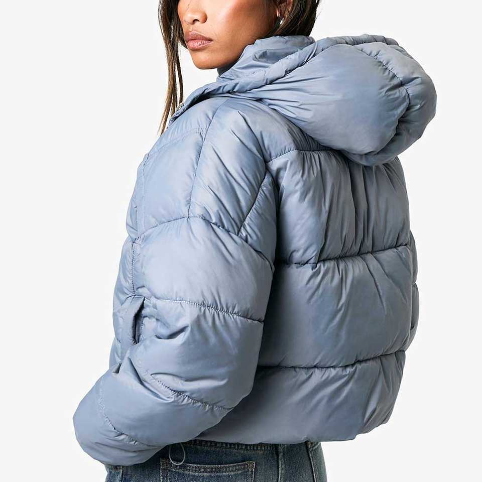 Veste d'hiver légère et courte en duvet avec poche chaude pour femmes Veste matelassée simple pour femmes