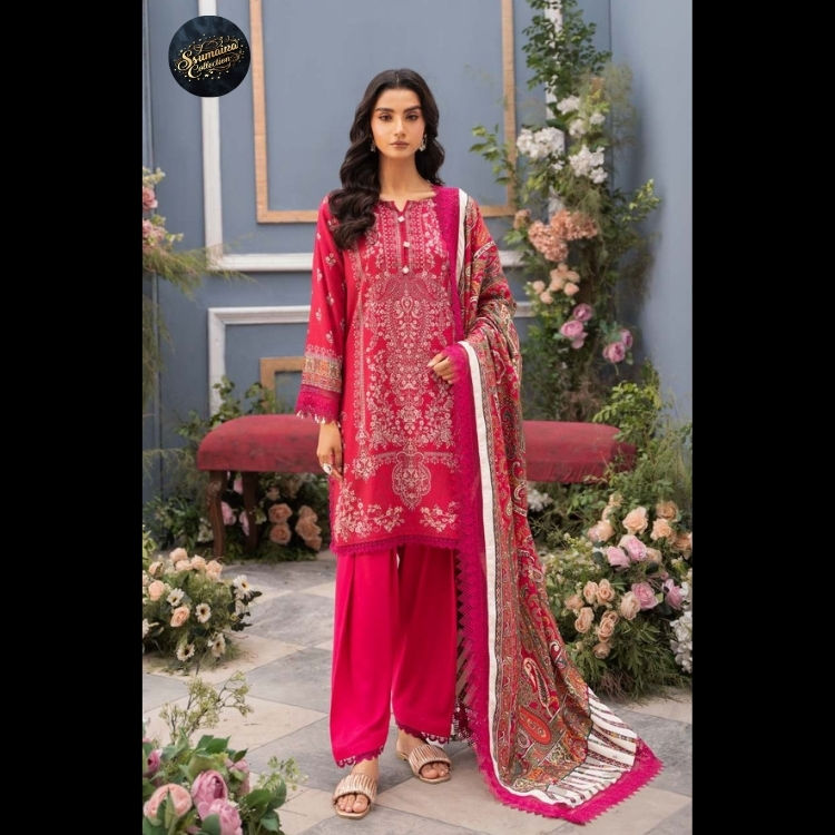 Collection de linge d'hiver Offre de réduction Lot mausummery imprimé numérique Collection de lin Doria-03 Pcs cousu Anarkali