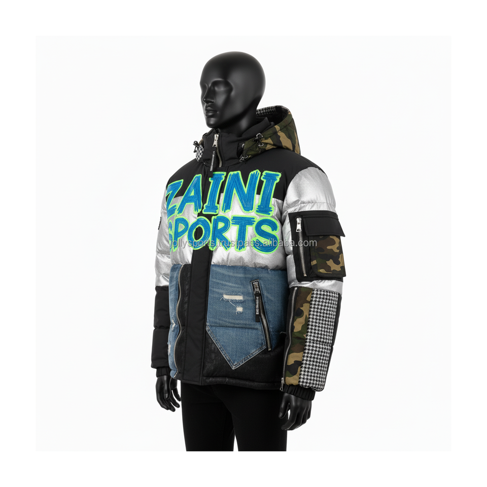 Veste polaire d'hiver pour hommes Tissu en nylon haute densité avec denim et panneau de camouflage Broderie personnalisée Logo Veste polaire pour homme