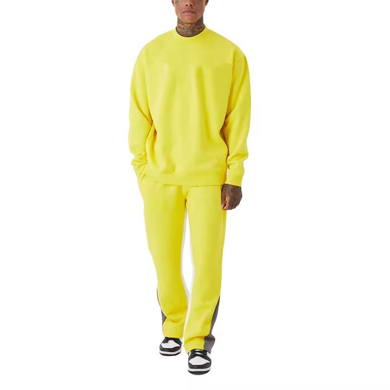 Ensemble de survêtement d'hiver pour homme grande taille, couleur unie, manches courtes, col rond, 2 pièces, 100 % coton, meilleure qualité OEM, vente chaude