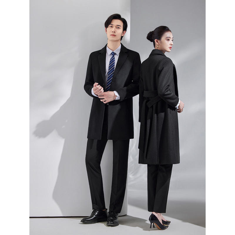 Winter Mid Length Wool Coat For Work Uniforms Men Women Solid Color Thickened With Belt Unisex Adult Size YS 6016 9002