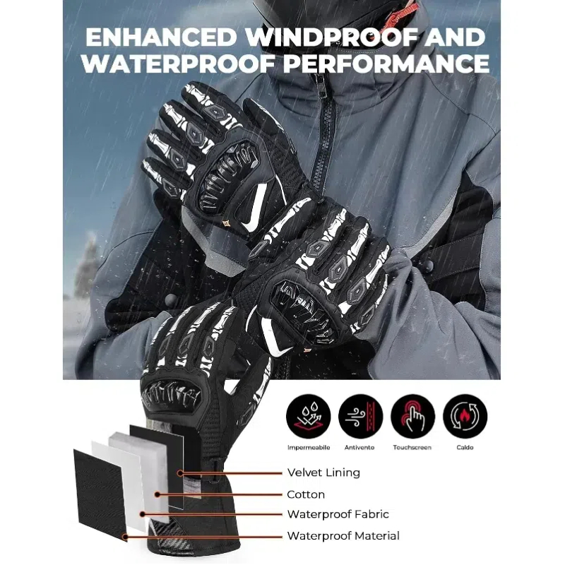 Gants de moto d'hiver imperméables et chauds avec écran tactile, adaptés aux compétitions de moto